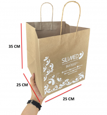 Bolsas de Papel Kraft elaboradas con papel de primera 120-140 gramos. Bolsas ecológicas degradables amigables con el medio ambiente. Utiliza Kraft reciclado, promueve la vida! Especial para restarurantes – comida para llevar, abarrotes, tiendas de ropa, cosméticos, regalos, etc. Contamos con la posibilidad de entrega sin impresión y personalizadas con impresión. Envíos a todo México